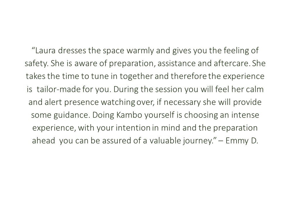 - Kambo Meditation (a gentle and introspective way of serving, without purging)